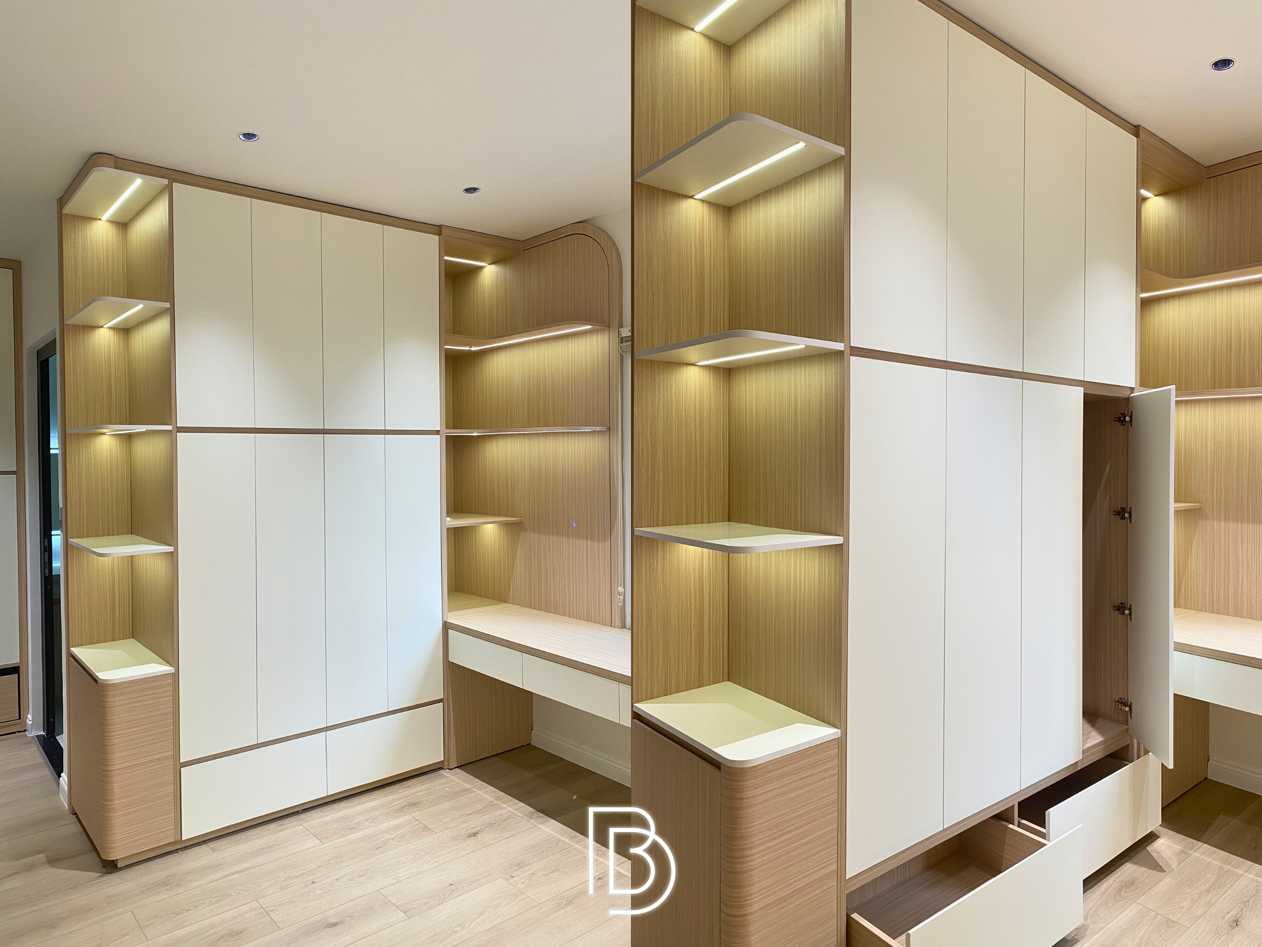 Thi công sắc nét: Từng đường chỉ cạnh, các chi tiết bo góc tủ đều được xử lý tỉ mỉ, đảm bảo độ tinh xảo mà các sản phẩm nội thất bán sẵn không bao giờ có được.